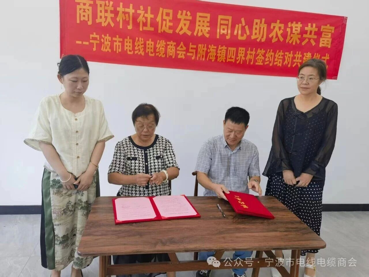 为深入贯彻落实习近平总书记关于乡村振兴和共同富裕重要指示精神,积极响应宁波市工商联“商联村社,助力共富”号召,2025年9月,宁波市电线电缆商会与慈溪市附海镇四界村在四界村村会议室隆重举行结对共建签约仪式。